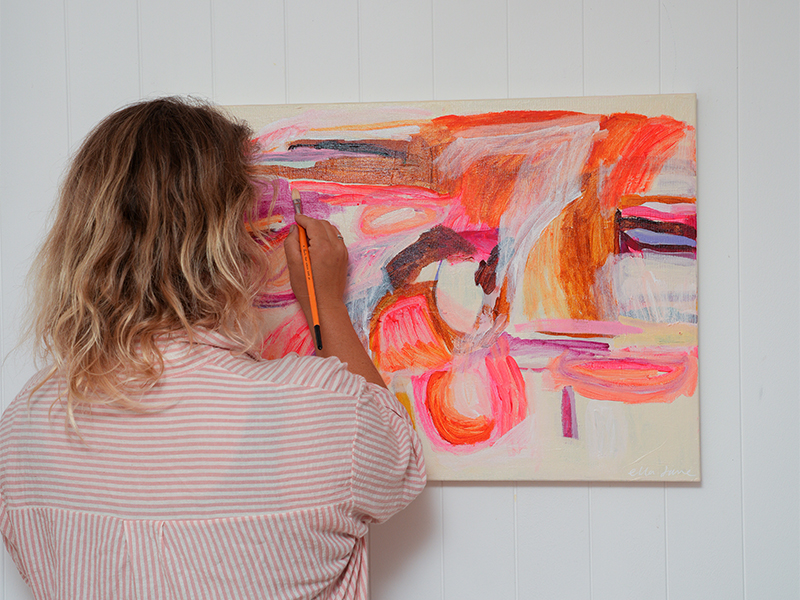 Abstract artist ella Jane is based on the mid north coast of australia and creates fun inspiring original art that elevates any space. She’s often described as the life of the party, a ray of sunshine and a delight to be around, which oozes out of her work. After her travel around Australia she’s come back with new inspiration for her work.
